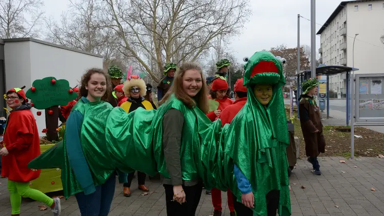 Unsere bunte Gruppe sucht sich ein Motto, stellt die Kostüme gemeinsam her und verbringt einen fröhlichen Tag miteinander.